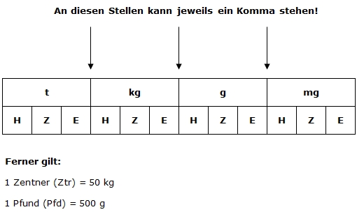 Gewichtsmaßen mit Kommadarstellung