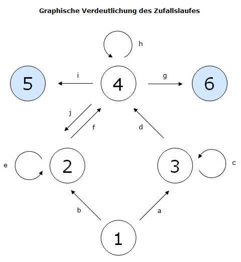 Man darf sich darunter einen Zufallslauf durch den Graphen unter Beachtung der variabel gehaltenen Übergangswahrscheinlichkeiten vorstellen.
